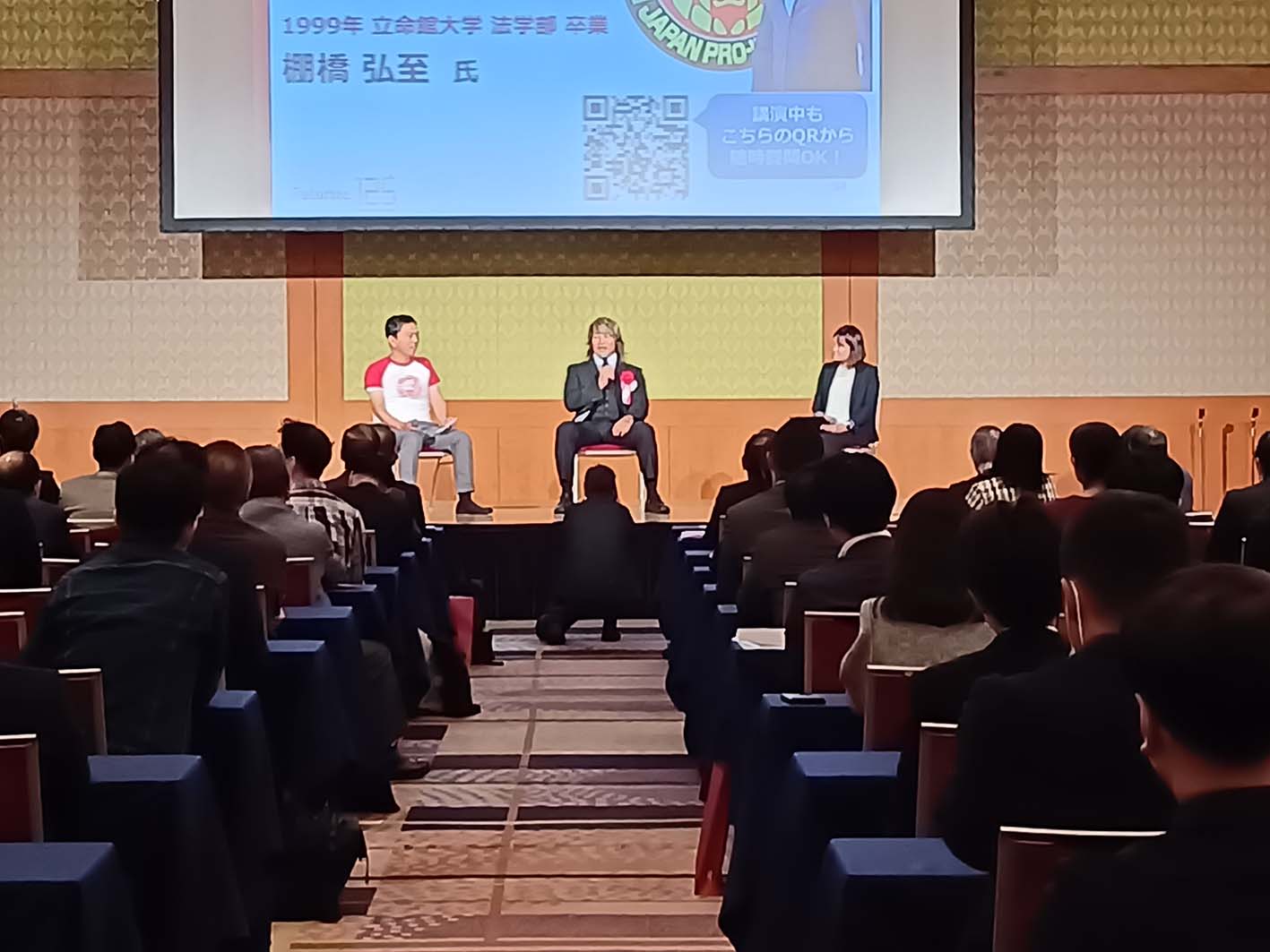 第二部 講演会は、1月4日東京ドームで引退試合を行う、新日本プロレス社長 棚橋弘至氏(1999年法卒)。