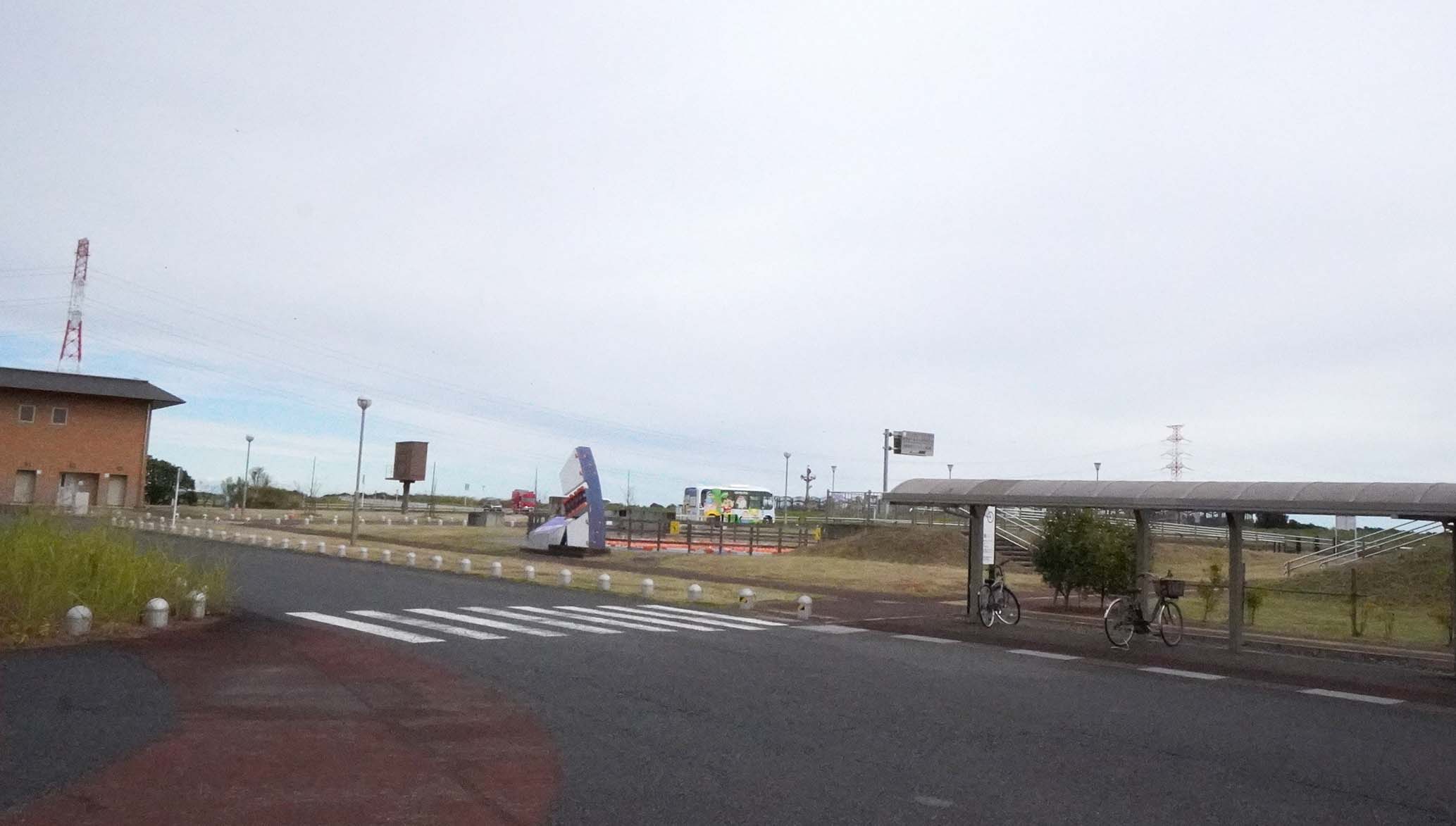 施設の見学や管理を行うメイン建物の「龍Q館(りゅうきゅうかん)」に行くコミュニティバス「春バス」です。