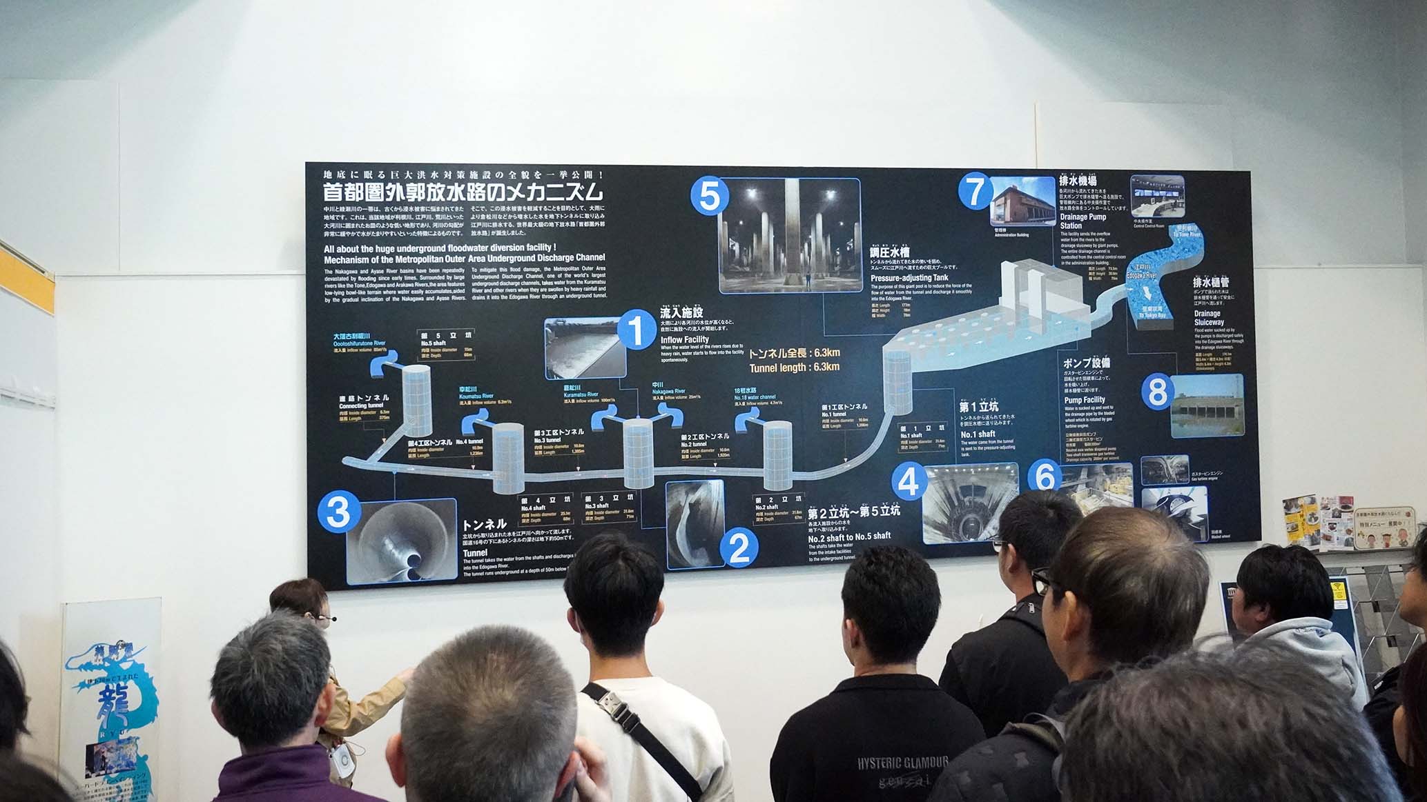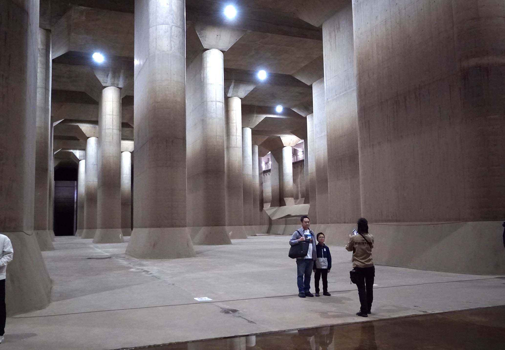川の水位が急に上がったとき、その水を地下の巨大トンネルに一時的に流し込んでためて、ゆっくり江戸川へ流すことで、周りの地域を守っています。つまり『川の緊急避難所』のような役割を持つ洪水対策施設です。」
